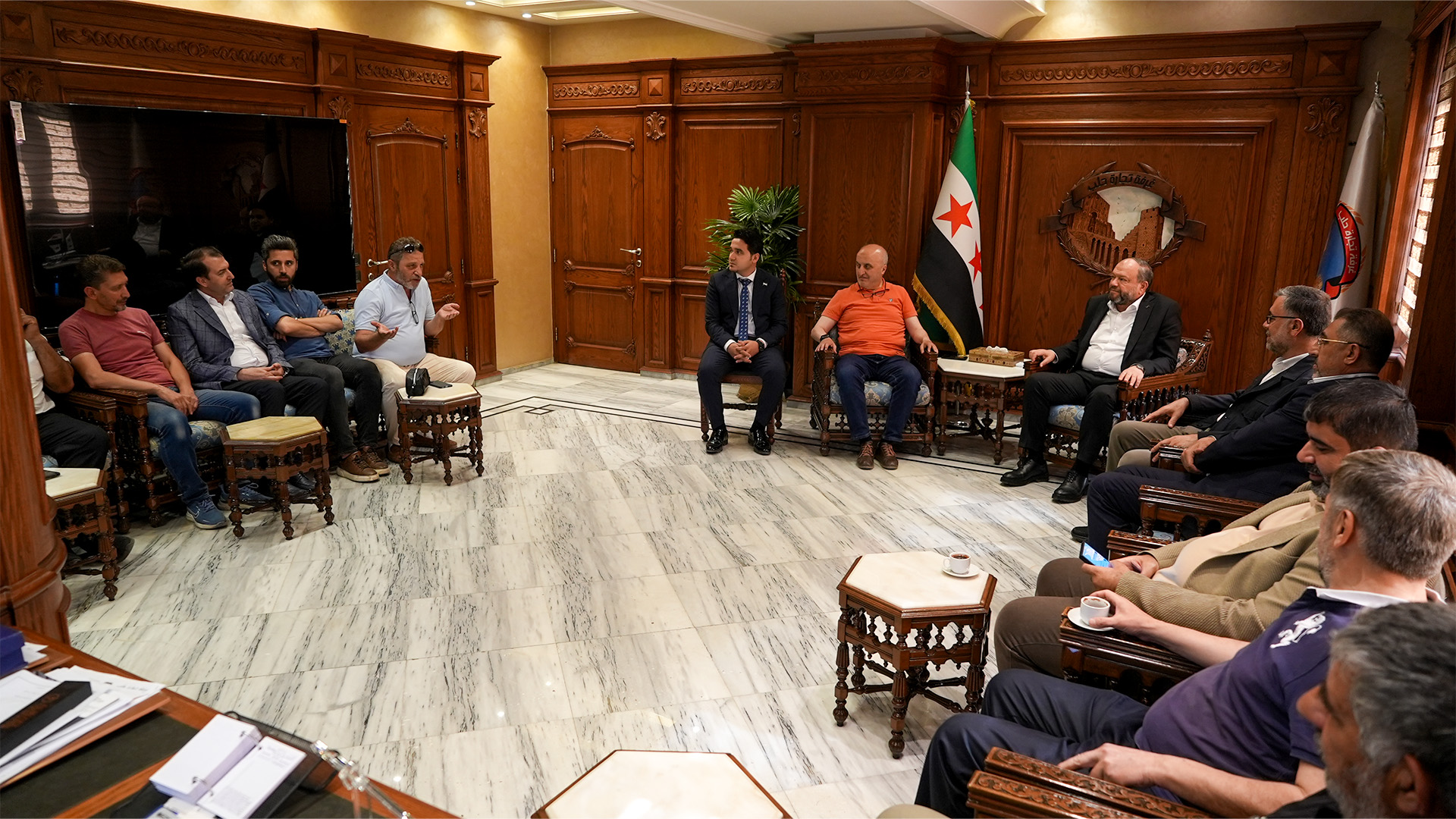 Bülbülzade Derneği Başkanı Turgay Aldemir ve beraberindeki heyet, Halep Ticaret Odası Başkanı Muhammed Said Şeyhkâr’ı ziyaret etti.